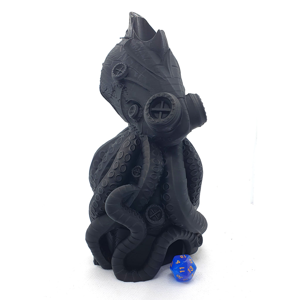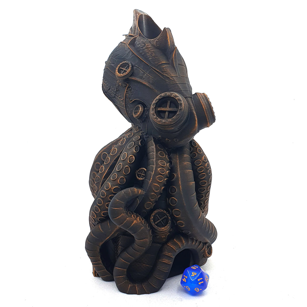 Unleash the Kraken of Chance with the Octopunk Dice Tower! Elevate your game night with a touch of Victorian flair and mechanical wonder. The Octopunk Dice Tower stands tall at an imposing 23cm, with a sturdy base of 13cm, ensuring that your dice rolls are as monumental as they are precise. Crafted in a rich steampunk style, this tower features an intricately designed octopus, tentacles entwined with mechanical flair, embodying the fusion of organic form and industrial function. Whether you're battling dragons or trading in the markets of Waterdeep, let the Octopunk Dice Tower guide your fate with style and spectacle.